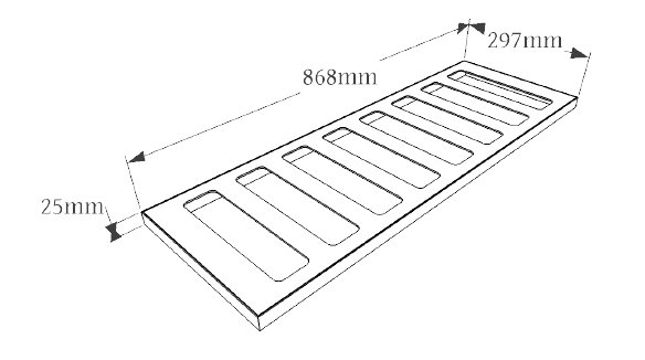 Material: CNC cut aluminum sheet fitted on a sturdy aluminum framework, finished with a textured black powder coating